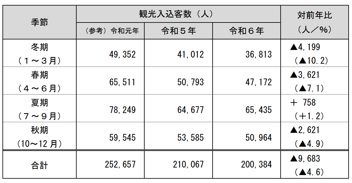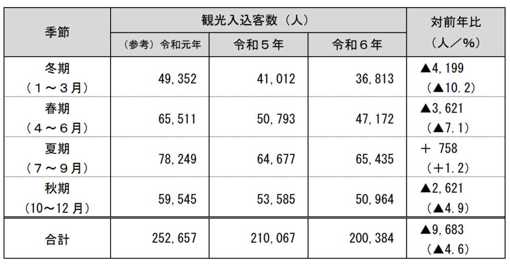 五島の観光は夏が忙しく冬場が閑散期であるためです。最新の観光統計でもそれが明らかです。